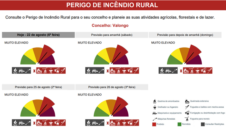 - Perigo de Incêndio Rural - Valongo no nível Muito Elevado