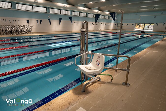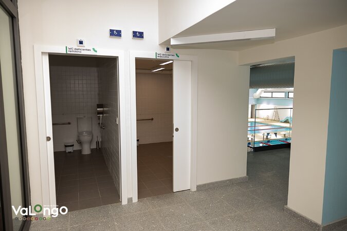 As bancadas foram alteradas para permitir o acesso a pessoas com mobilidade condicionada, criando uma plataforma para a permanência das mesmas no espaço entre bancadas. Foi ainda instalada uma cadeira hidráulica para acesso à piscina.