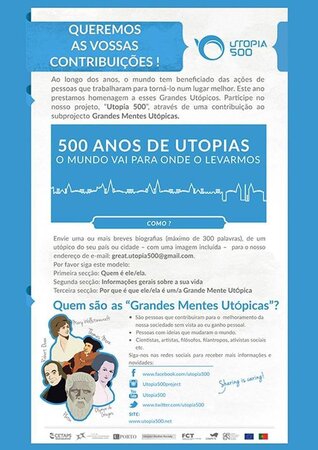Como parte da comemoração dos 500 anos da publicação de Utopia, de Thomas More, embarcámos numa missão de escala global para identificar e contar a história de figuras locais, nacionais e internacionais que contribuíram para a nossa sociedade. Junte-se a nós!