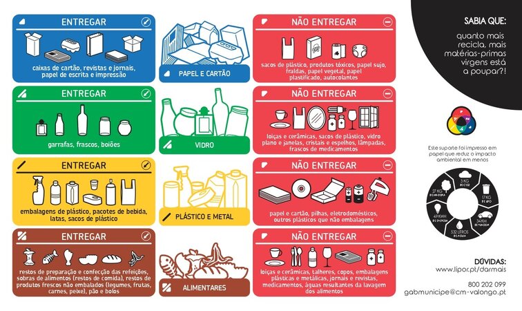 Consulte a listagem para verificar se está abrangido pelo nova alrgamento do projeto «RECICLAR É DAR +» e em caso afirmativo contacte pelo número 800 202 099 para agendar a entrega gratuita dos contentores.
