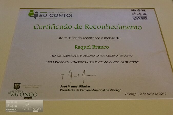 O projeto «Rir é MESMO o Melhor Remédio» foi o grande vencedor do Orçamento Participativo (OP) - Eu Conto, específico para os funcionários da Câmara Municipal de Valongo. «Rir é MESMO o Melhor Remédio» foi proposto por Raquel Branco em parceria com várias colegas da Divisão de Educação, Ação Social e Desporto.