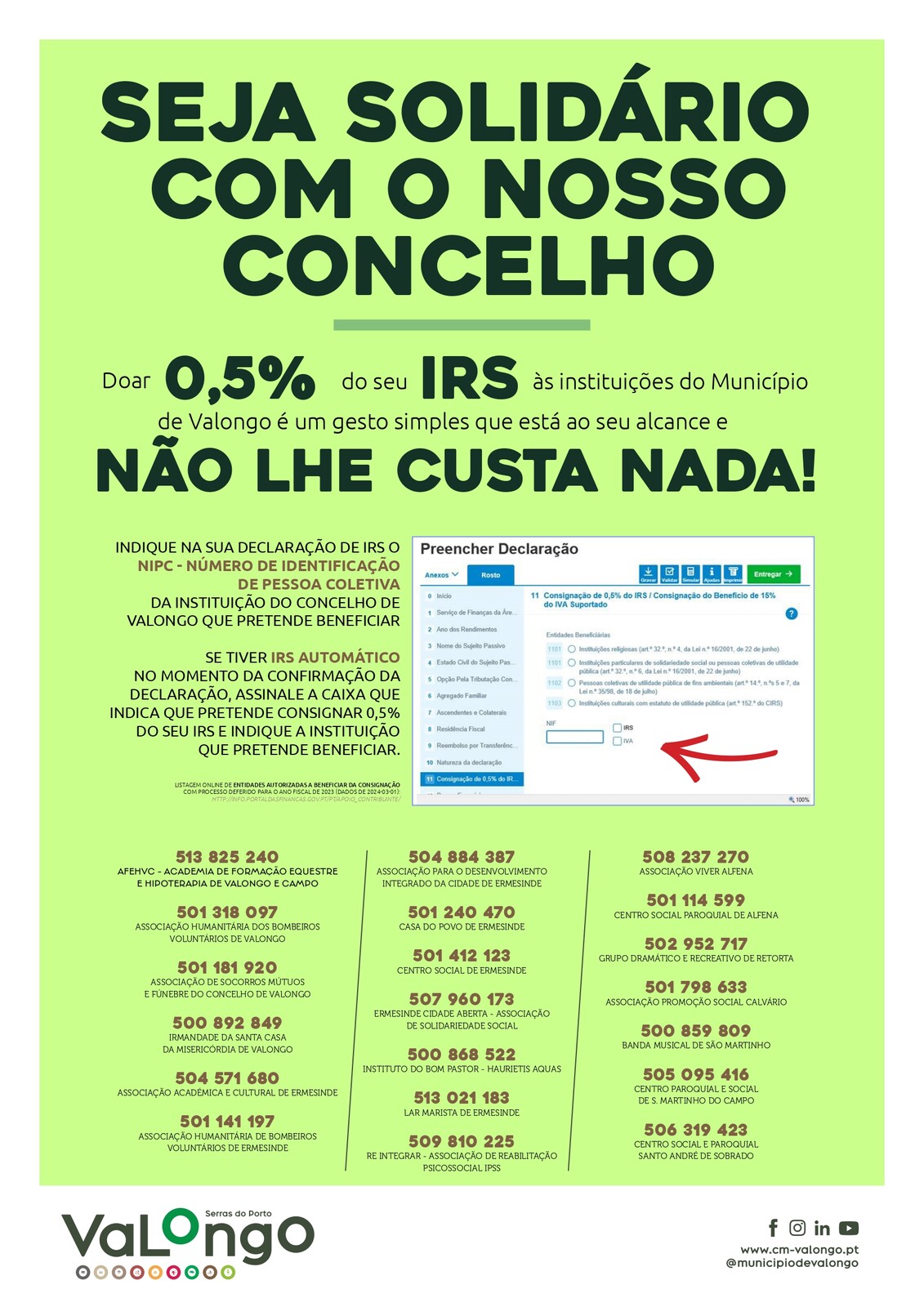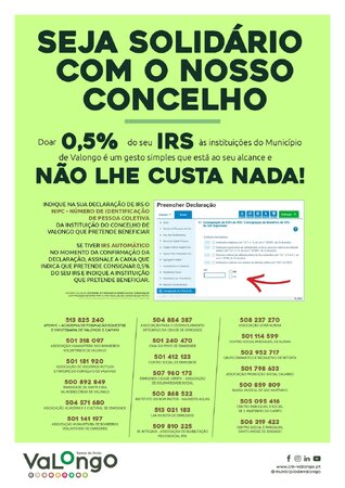Seja solidário e ajude as instituições do Concelho de Valongo através da doação de 0,5% do seu IRS.