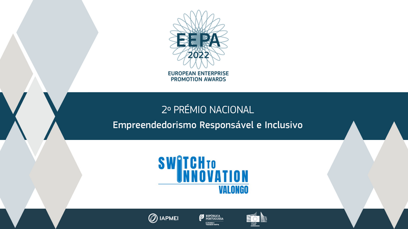 O projeto Switch To Innovation | Centro de Cidadania Digital de Valongo foi galardoado com o 2º Prémio, na categoria Empreendorismo Responsável e Inclusivo, no âmbito dos EEPA 2022 - European Enterprise Promotion Awards.