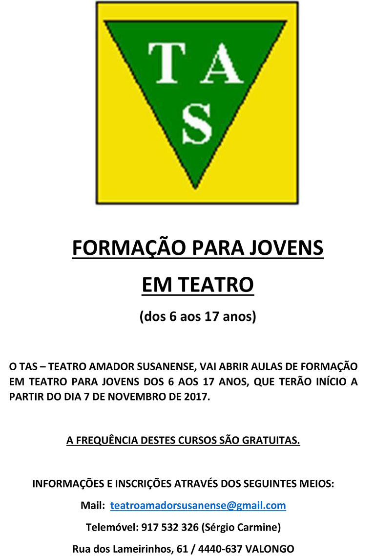 - TAS promove formação em Teatro para jovens