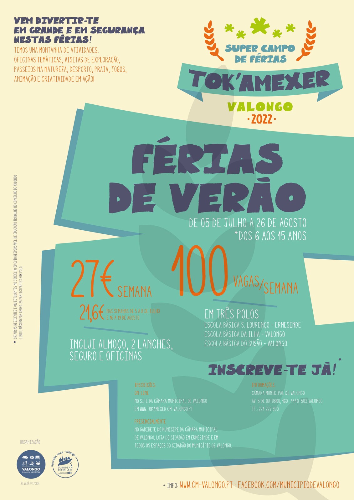 O Programa TOK’A MEXER VALONGO - FÉRIAS DE VERÃO está quase a começar e oferece diversão, atividades e muita brincadeira.