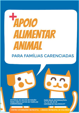 A Câmara Municipal de Valongo através do Gabinete de Medicina Veterinária irá iniciar o apoio às familias carenciadas do Concelho na alimentação dos seus animais de companhia através da criação de um banco alimentar animal designado por Apoio Alimentar Animal (AAA).