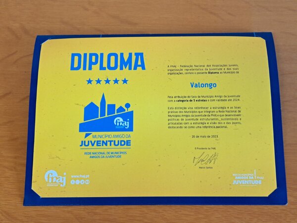 - Valongo distinguido com SELO MUNICÍPIO AMIGO DA JUVENTUDE - Categoria de 5 estrelas