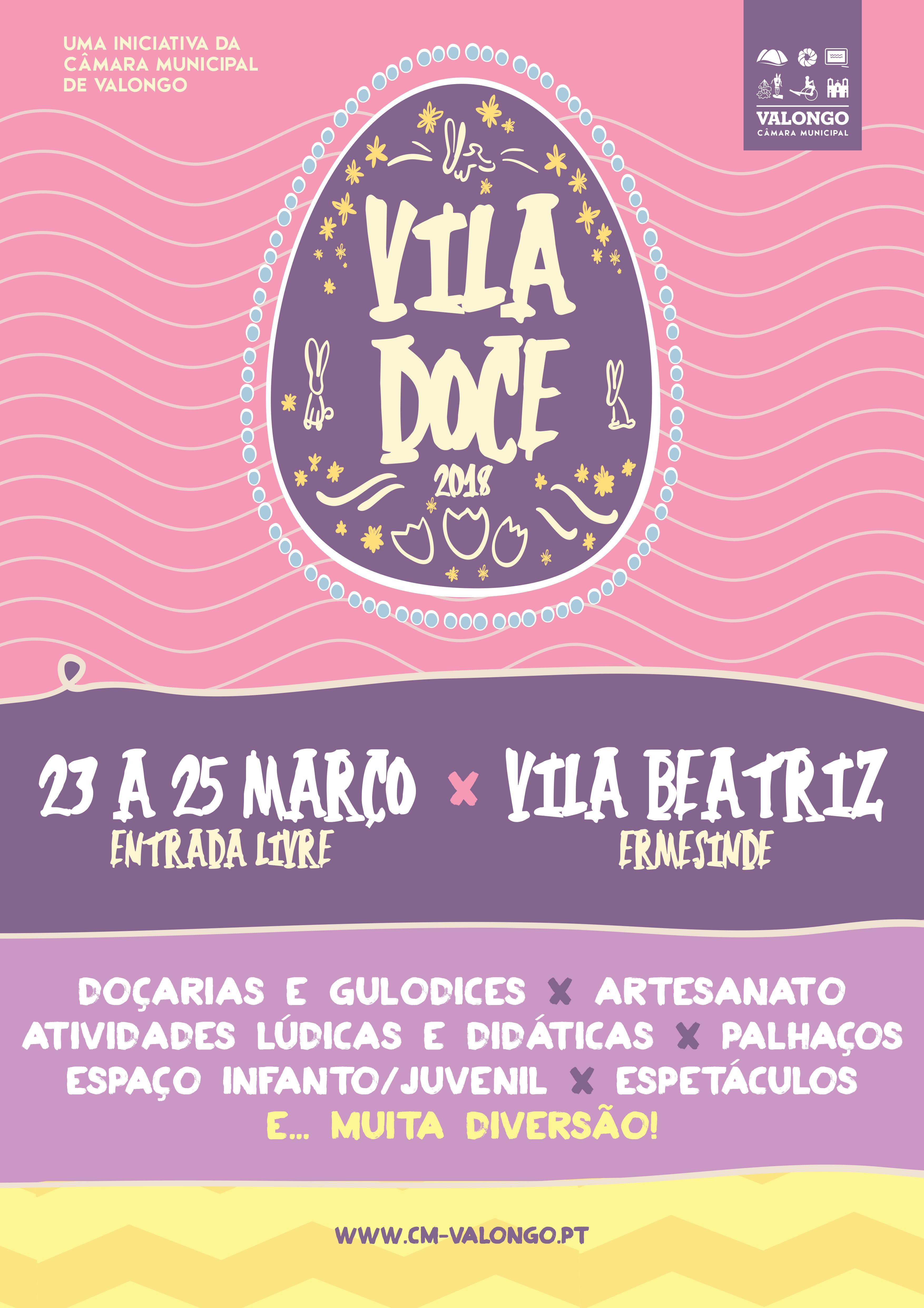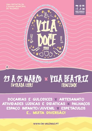 Entre 23 e 25 de março, na Vila Beatriz, em Ermesinde, o Município de Valongo promove a 4ª edição da “Vila Doce”, uma iniciativa que pretende assinalar a época pascal e a chegada da primavera, reunindo, num mesmo local, diferentes vertentes: artesanato e gastronomia ligados à festividade, espaços lúdicos e didáticos para crianças e jovens e um vasto programa de animação ambulante e de palco. Berg (no sábado) e o Avô Cantigas (no domingo) marcam presença no palco principal