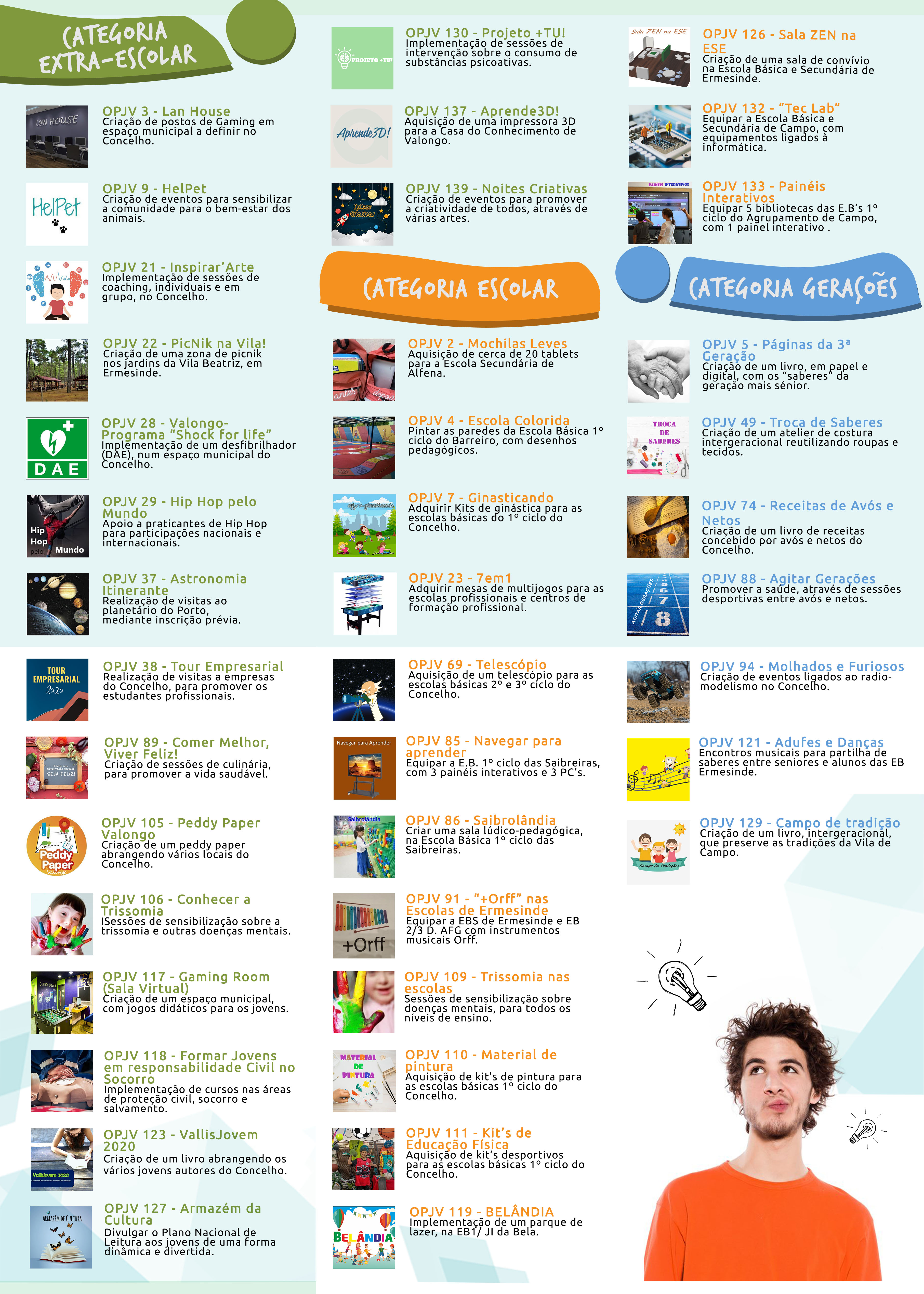 As votações para a 7ª Edição do Orçamento Participativo Jovem de Valongo (OPJV) decorrem até 13 de novembro. Os jovens podem votar em 3 projetos (um por cada categoria) dos 40 que se encontram a votação. PROPOSTAS