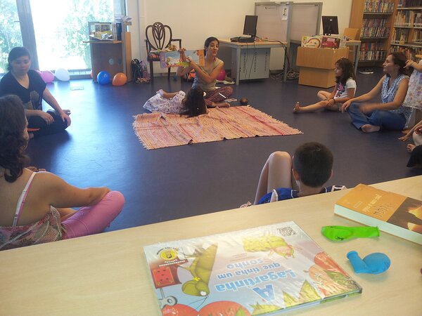 Foi uma manhã mágica em família, com muitas leituras, dinamizada pela professora Ana Luísa, da Escola Sunshine Yoga e do projeto CRIARTE.