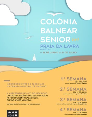 Breve descrição: colónia balnear a ter lugar nos meses de junho e julho, realizada no âmbito dos portadores do cartão sénior municipal, inscritos na academia sénior abarcando as 5 freguesias.